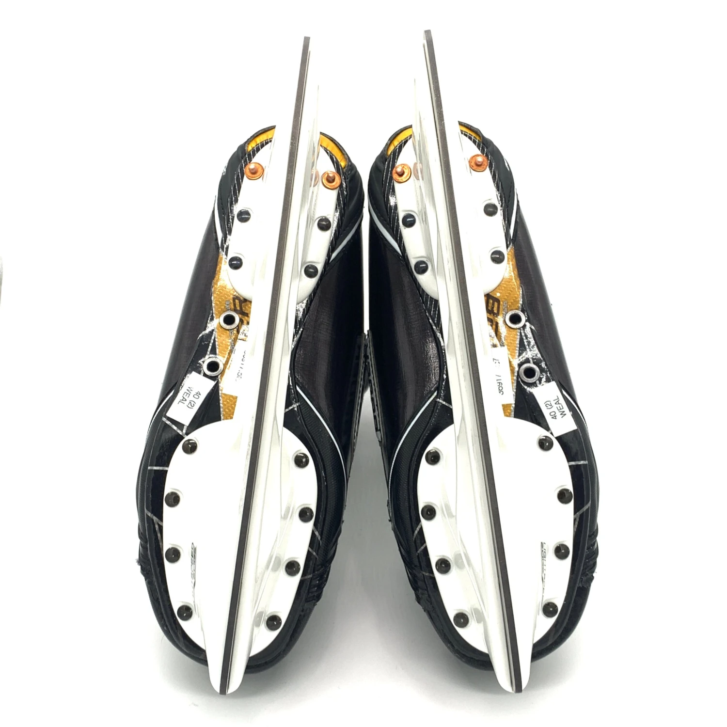 New Bauer Supreme 1S skates from an NCAA team in a size 7D. They have 263 Tuuk holders and LS5 steel. This pair of skates have a custom tongue different than the traditional retail tongue.
