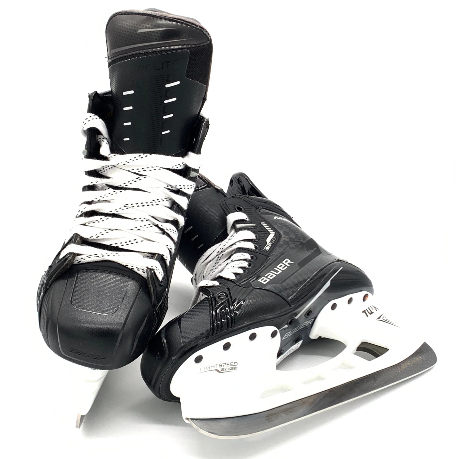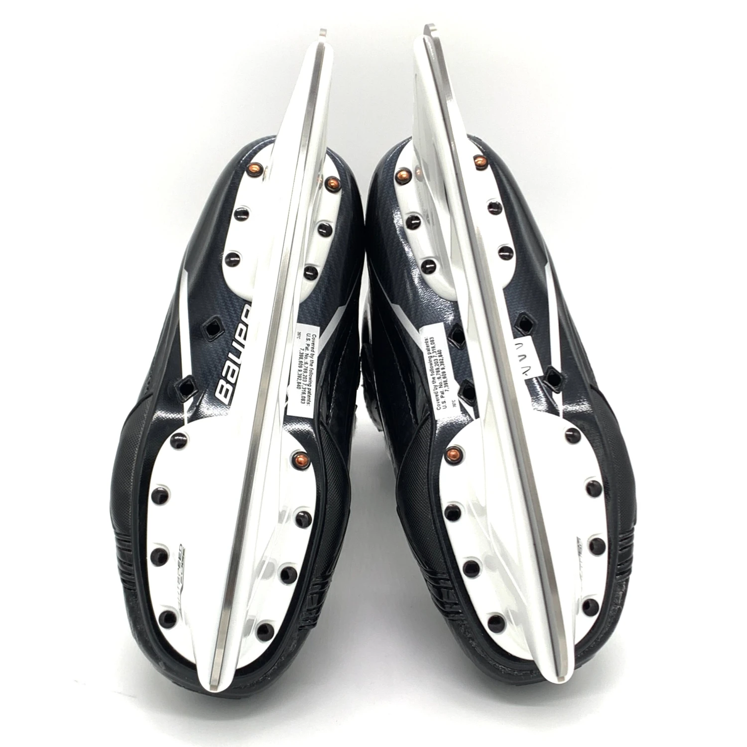 Bauer Supreme Mach skates from an NCAA team. Left size 7.5D right size 7D with 263 Tuuk holders and LS Pulse TI steel. This pair of skates have a custom Hyperlite tongue.
