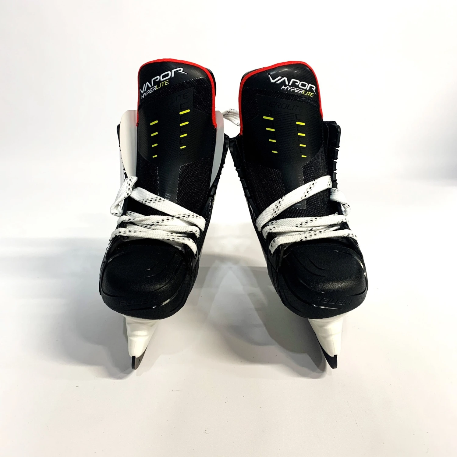 New Bauer Vapor Hyperlite skates from an NCAA team. Size 4 Fit 1 with 238 holders and no steel. These skates appear to be retail and therefore have placeholder blades in them. (NSK227)