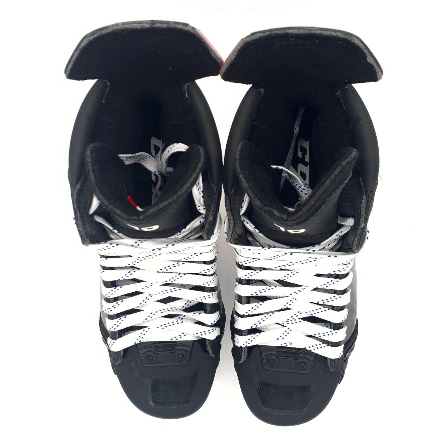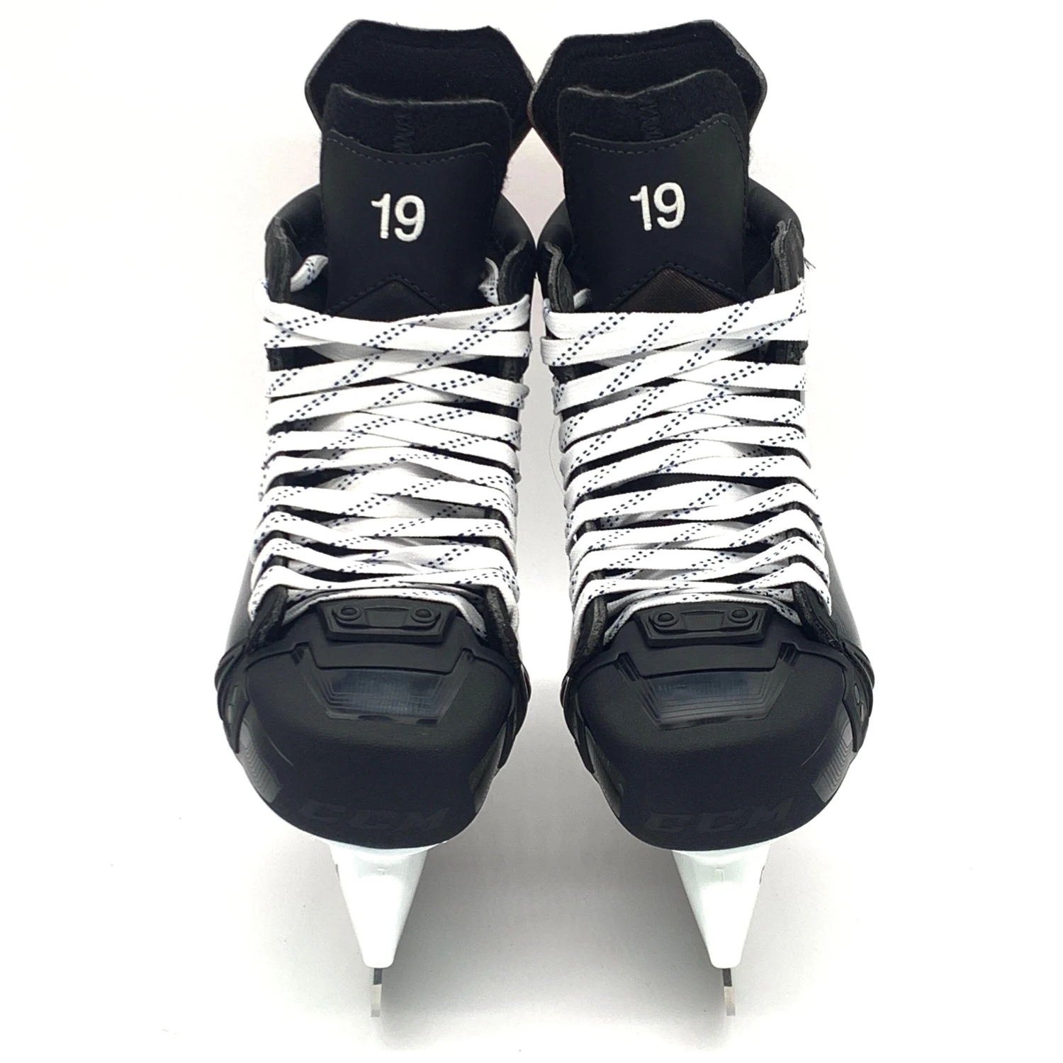 CCM Jetspeed FT4 Pro hockey skates from Dawson Mercer of the New Jersey Devild. Left size 8.5D right size 8.25D with 280 XS holders and Step steel. These skates have custom 19 on the tongues.