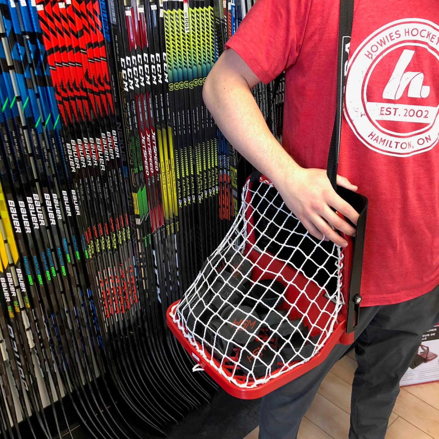 The Puck Catcher is designed to store and carry pucks. But its so much cooler than that, great for small area games, practicing passing, and messing around out on the ice.